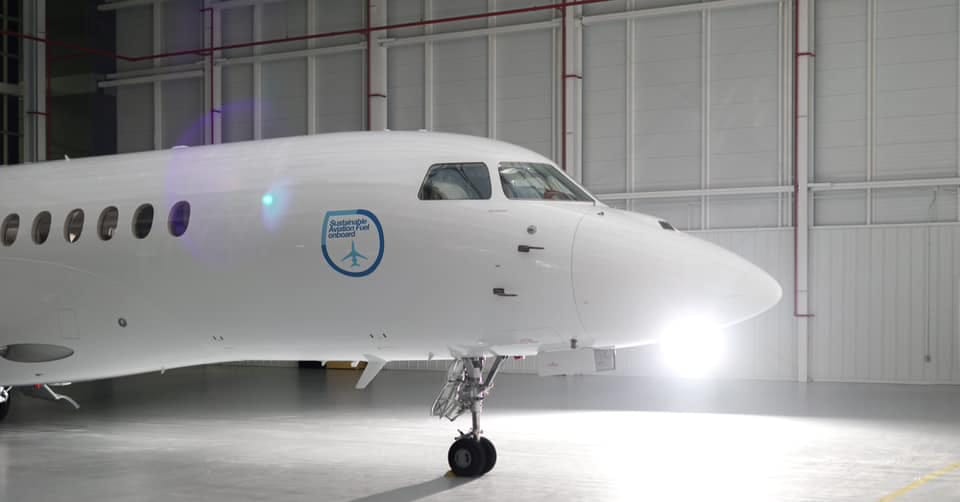 SAF เสนอการลดการปล่อยคาร์บอน 80 ถึง 90% เมื่อเทียบกับน้ำมันเครื่องบินทั่วไปเมื่อใช้ในรูปแบบเข้มข้น เครื่องบินคู่ระยะไกลพิเศษ Falcon 10X ใหม่จะเข้ากันได้กับเชื้อเพลิง SAF 100%