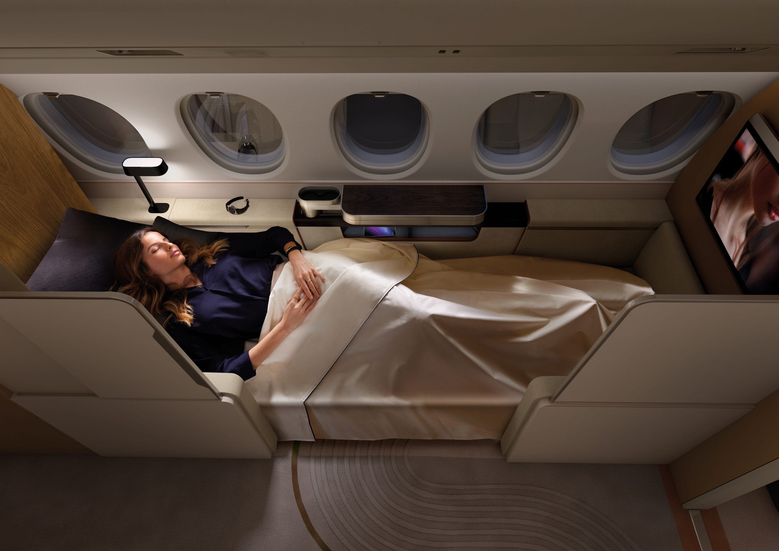 Dassault Aviation is introducing a new concept in passenger comfort, the Falcon Privacy Suite, that will offer more personal space, greater peace and quiet, and a more comfortable and restful sleep on long flights. Up to now, privacy suites individual compartments partitioned off from surrounding passengers and equipped with an electrically operated reclining lie-flat bed have not been available on purpose-built business jets. The Dassault Privacy Suite aims to fill this need. The suite will initially be offered on the new extra-widebody Falcon 6X twin and the popular Falcon 8X very-long range tri-jet.