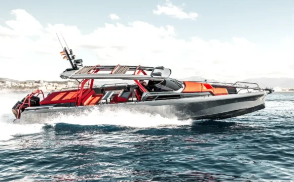 British poet Lord Byron famously declared Montenegro’s fjord-like Bay of Kotor to be the world’s “most beautiful encounter between land and the sea" an idyllic (and ideal) testing ground for Dominator’s new $1.3 million Midi Ilumen M35, which the Italian yard designed as a petite doppelgänger for a client’s 90-foot Ilumen 28M. Its billing as a 35-foot “mini- superyacht" sounds pretentious, but the details demonstrate a yacht-like quality: hand-laid teak decks with splashes of mirror- polished stainless steel and a chic reverse-angle windshield.