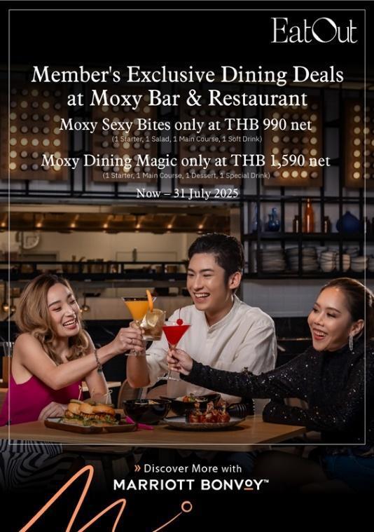 15 May 2025 – Bangkok, Thailand – Moxy Bangkok Ratchaprasong, the first-ever Moxy Hotel in Thailand and the largest in Asia Pacific (excluding China), invites food lovers to indulge in two playful set menus as part of the Eat Out with Marriott Bonvoy campaign. From now until 31 July 2025, Marriott Bonvoy members can enjoy exclusive dining offers at Moxy Bar & Restaurant, crafted for those who crave flavor, fun, and a little extra flair in the heart of Bangkok.