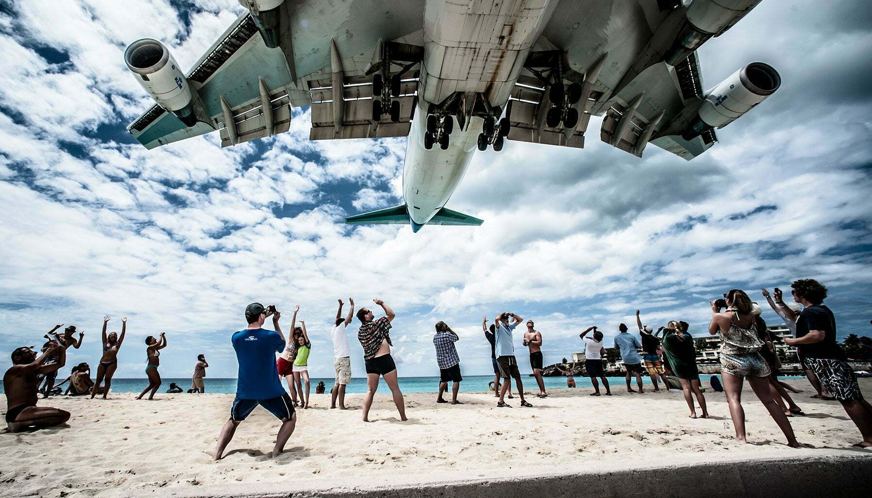 Undeniably the most dramatic airport approach on the list; if not for the passengers then certainly for the observers, lounging on white sands only to have their reverie interrupted by a jumbo jet gliding mere metres above their heads as it heads to the runway just across the road. Plane spotters never had it better, and snapping a selfie with a Boeing 747 just above you is de rigeur in this Dutch outpost in the Caribbean.