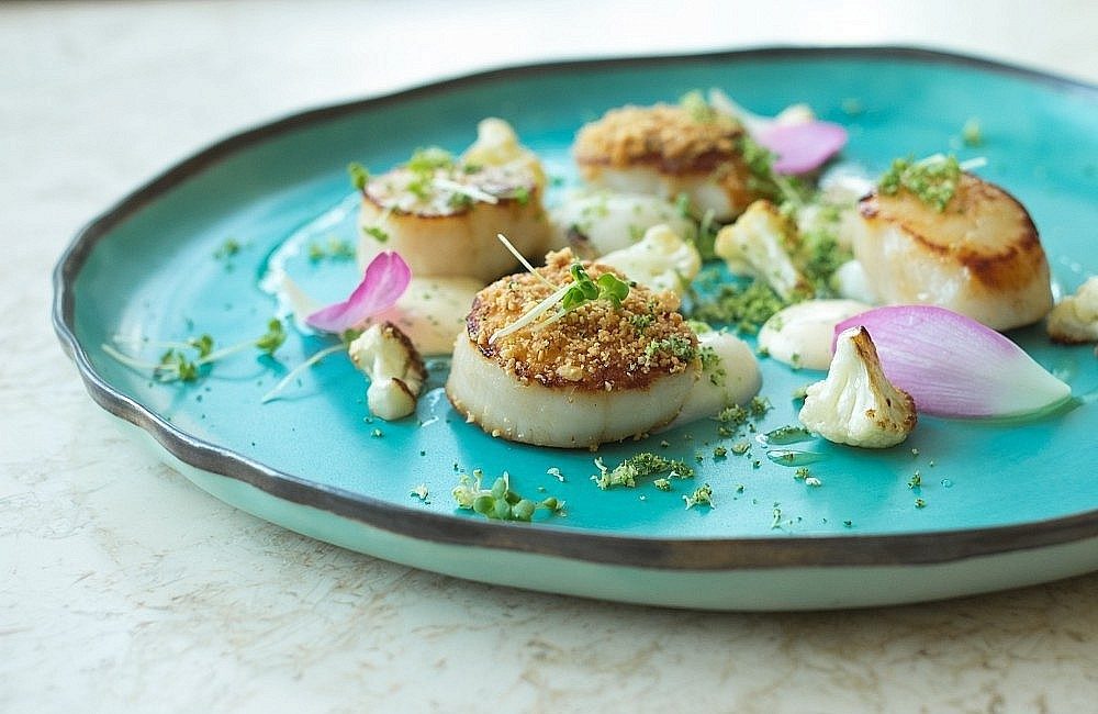 I started the night with first course of Yellow Fin Tuna Tartare with mango, mizuna, passion fruit and cucumber. My taste buds awakened with the excitement of this delicious and refreshing dish. Chef Franck then asked me if I would like to try the scallops. Although I tend to avoid scallops unless I am confident they are properly cooked to bring out the mildly sweet and delicate flavour, Chef Franck did not disappoint and presented me Hokkaido Scallops with crushed and toasted hazelnuts , florets of cauliflower and wholegrain mustard. The Hokkaido Scallops are definitely a must. Continuing to charm me with his food, Chef Franck served me the Lobster Risotto, which was undoubtedly my highlight of the night. The perfectly cooked creamy rice compliments the crunchy preserved shingi mushroom with white wine vinegar, topped with a beautiful piece of lobster.