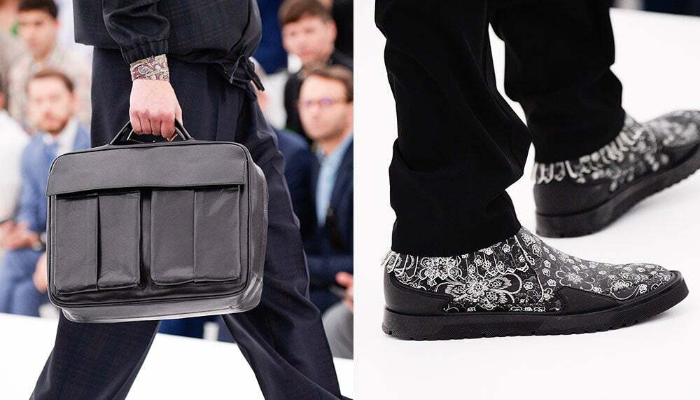 The following series had a touch of Asian influence. Madras, a lightweight cotton cloth with plaid patterns, was the former name of the city Chennai in India. Here, Pilati elevated the fabric into a luxurious couture-worthy Double Century Cashmere, a result of Ermenegildo Zegna’s constant innovations with tailoring fabrics. ‘Deconstructed’ jackets and oversized coats of varying check sizes were paired with loose fluid trousers that provided a contrast to the Italian designer’s strict tailoring. Paisley, a pattern rich in Indian heritage, also made an appearance on the wrist of the models.