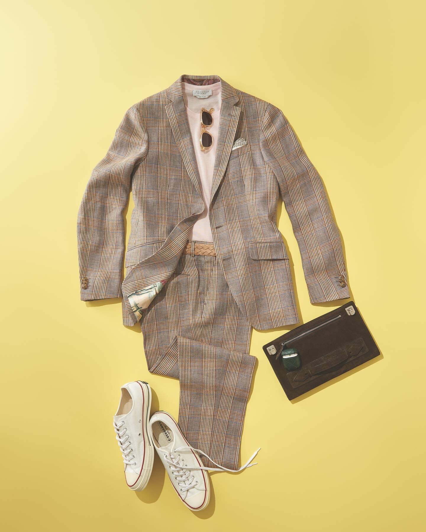 Whether you’re heading into the office or out on the town, suit up in something soft. Ditch your standard business suit for a lighter, looser take on the two-piece set. A roomy linen shirt jacket and matching trousers do the same job, but make it look easy.