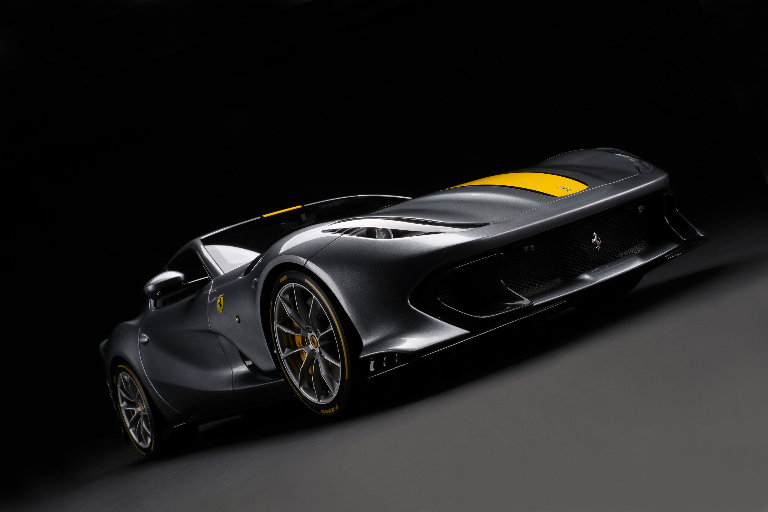 The 812 Competizione model necessitated over 3000 hours of development and the resulting prototype only received the approval of the Ferrari designers and engineers once they were fully satisfied with its accuracy of representation. Measuring over 58cm (23in) long, each subsequent model will take 300 hours to cast, fit, fettle, paint and assemble, capturing every last detail of the car, including its 330 P4-inspired rear spoiler and complex aerodynamic architecture.