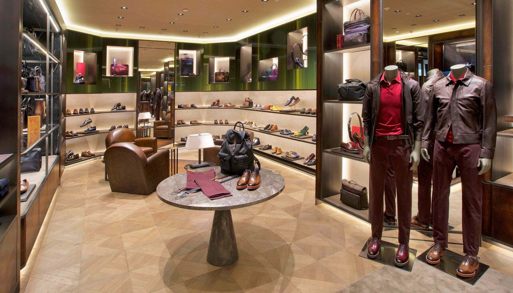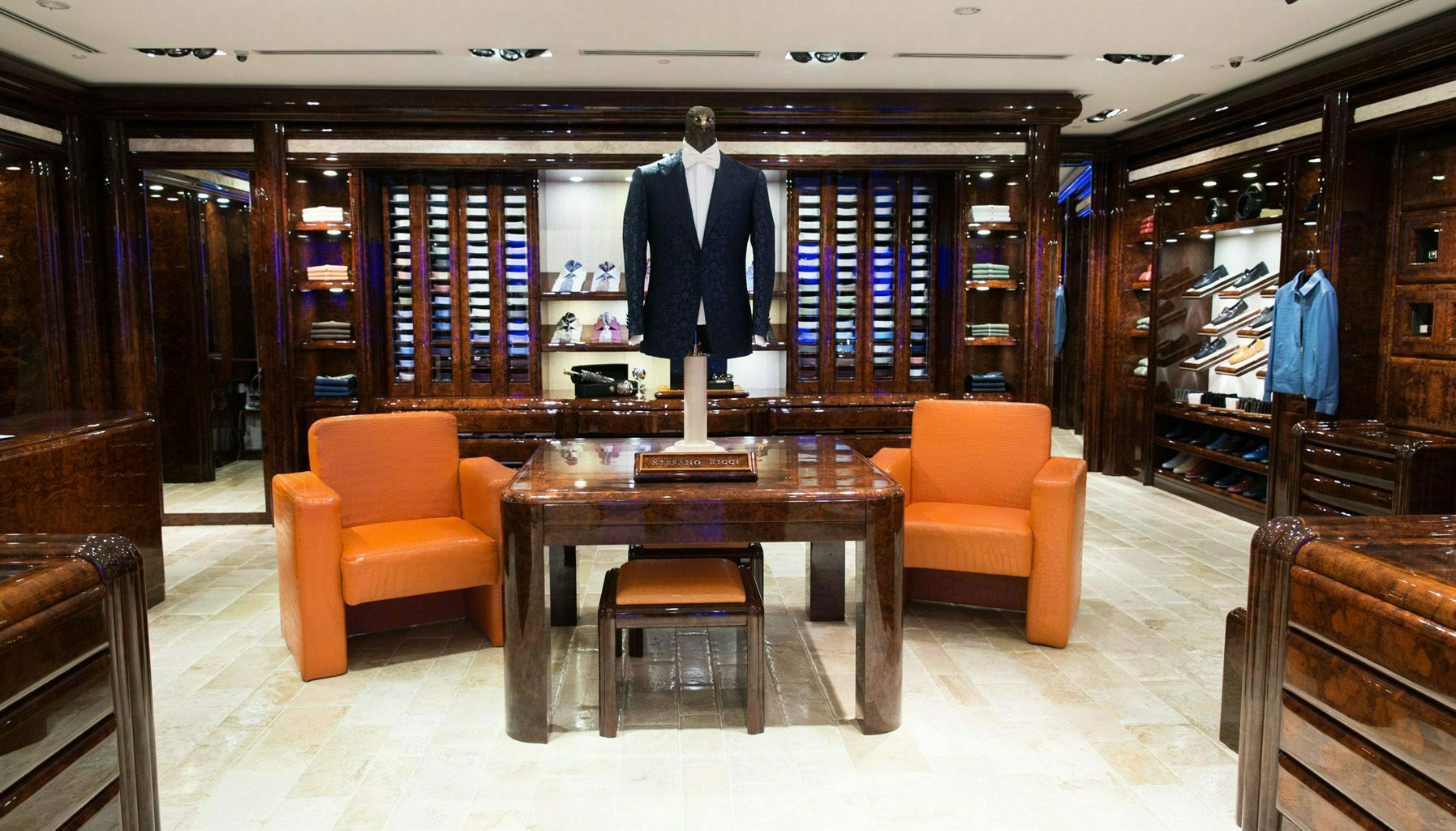 From the hand-polished Californian walnut briar root display cases to the uneven Tuscan travertine floors, Stefano Ricci’s visual identity is unabashedly opulent. Its Florentine heritage shines through the richly furnished store, which is peppered with larger-than-life silver horns and an ever-changing roster of displays like fibreglass knights. Customers can also relax on crocodile leather armchairs in between browsing. For VIPs, a private room is available for custom tailoring, and perusing the brand’s extensive crystal and porcelain homeware collection.