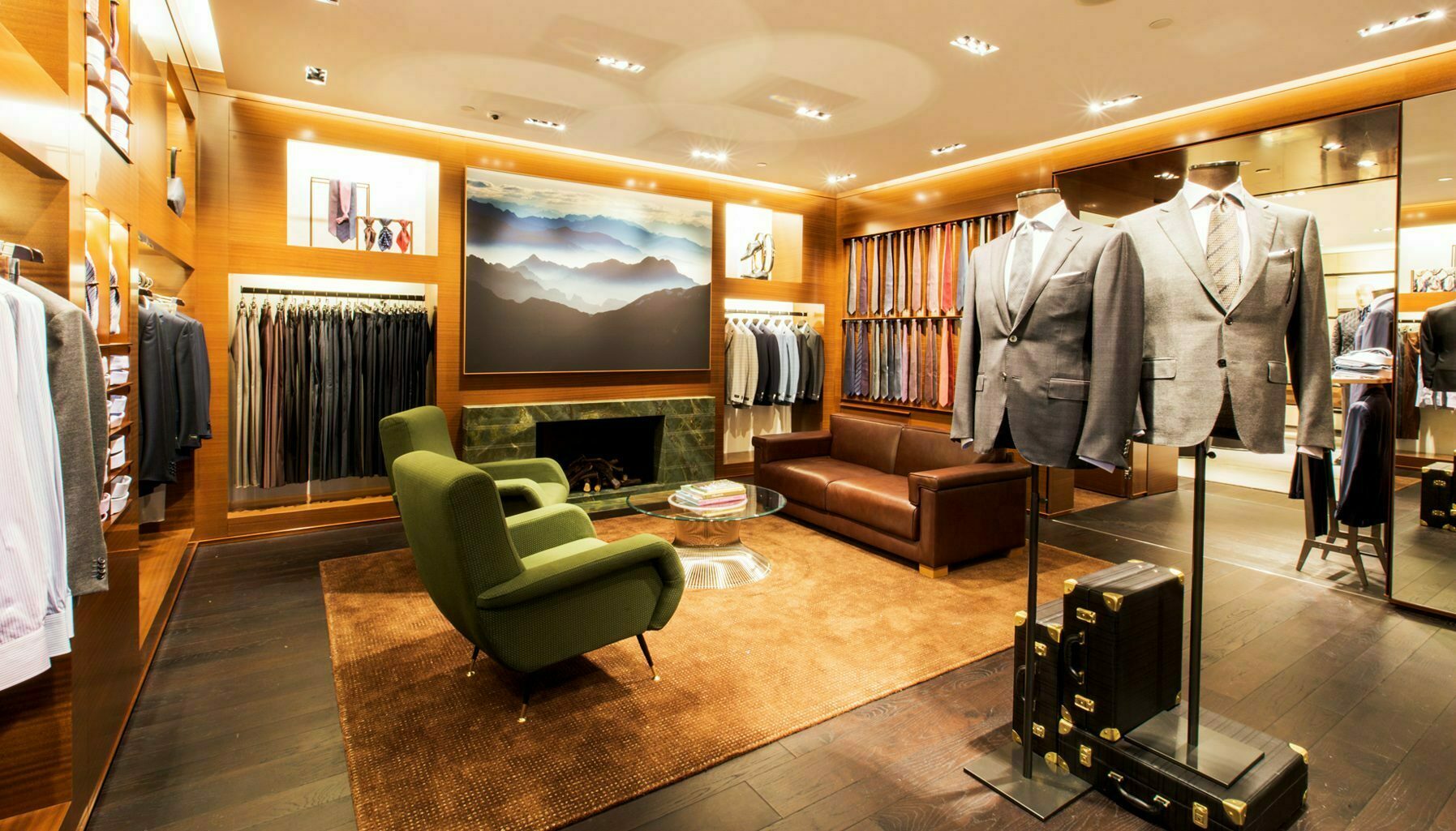 Designed by Italian architect Roberto Baciocchi — the same man who spruced up Prada’s, Car Shoe’s and Miu Miu’s showrooms — the 158sqm flagship is awash in neutral tones. With light marble and matte bronze covering most of the store’s interiors, the Italian label’s eye-catching array of ties and suits take centre stage, greeting customers as they enter. Vintage leather armchairs in olive subtly complement the elegantly masculine space where customers can be fitted for suits with the brand’s exclusive made-to-measure service.