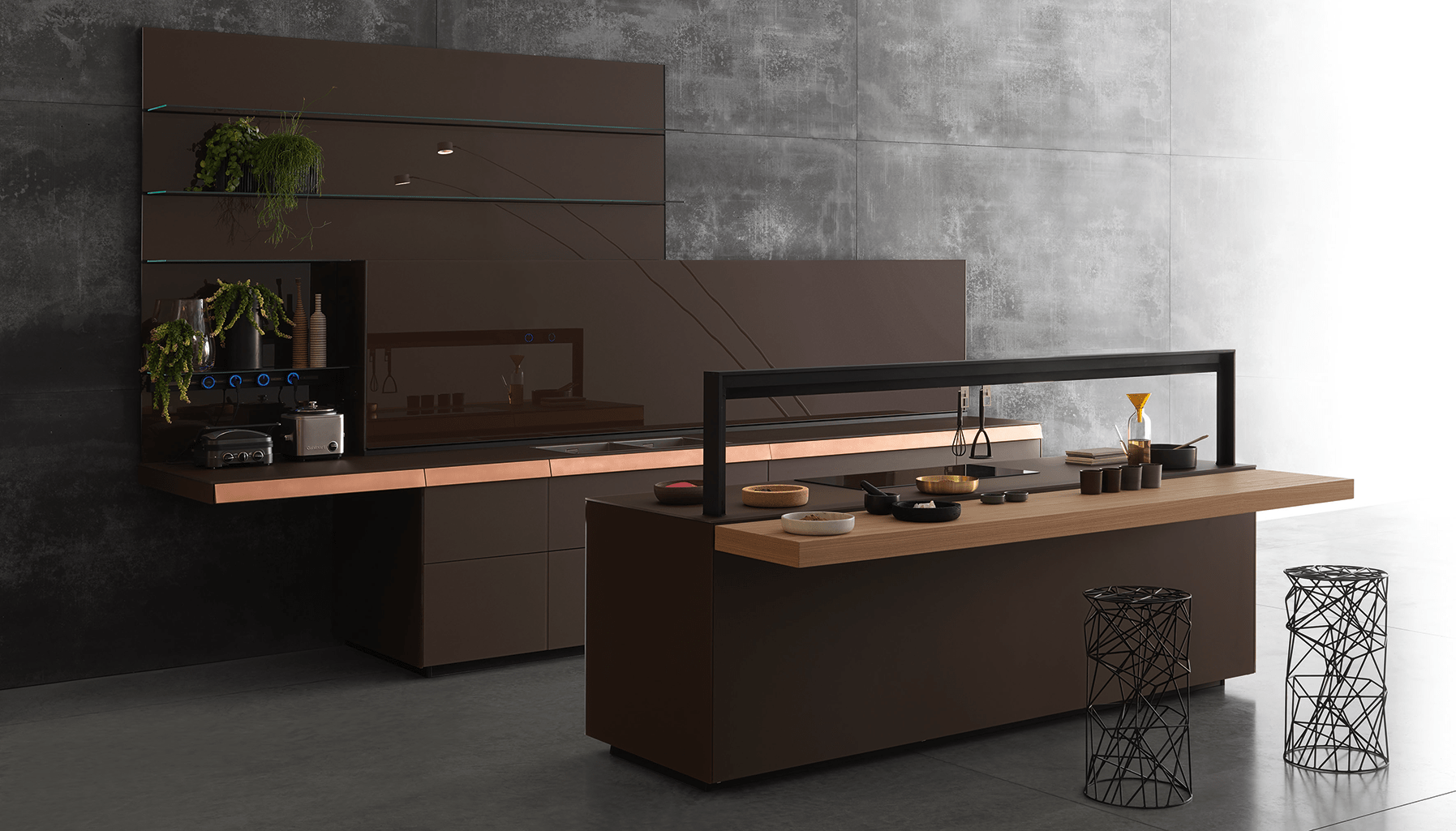 A kitchen can often serve as a repository of precious memories, recalling nostalgic scenes of our childhood watching grandma preparing a delicious meal at the stove. Valcucine’s latest Genius Loci design offers the perfect fusion of past and present – respecting our culinary heritage while integrating the latest technology. It appears modern but every piece features handcrafted workmanship and customisation to the nth degree, such as copper trim on the drawer’s fascia, handcrafted embellishments such as wood-carved inlays, or even the choice of stone or marble.
