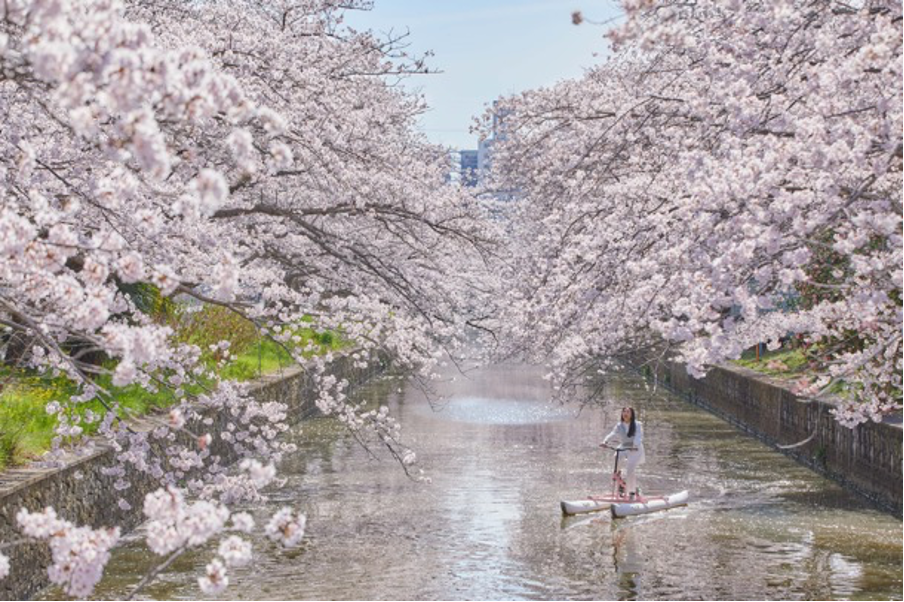 From March 25 to April 10, BEB5 Tsuchiura which has facilities specifically for cyclists, will offer the “Cherry Blossom Viewing Water Cycling" activity to guests. Guests can ride water bicycles on a 2km stretch of the Shinkawa river that is flanked by sakura trees on both banks.