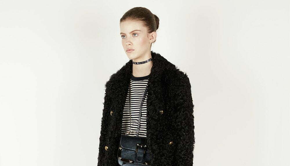 The folk art prints that Red Valentino has perfected also decorate this collection. Exotic tribal stripes and floral motifs are seen on statement coats, shearling cardigans and chiffon dresses. In particular, a long khaki green hooded coat hemmed with floral embroidery makes for excellent festival attire. The striking looks are part prim-and-proper, part rock-and-roll, providing inspiration for a spectrum of ladies looking for an interesting yet sophisticated wardrobe.