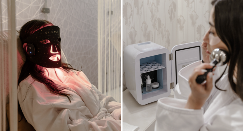The Beauty Fridge—which amounts to $142 worth of product—features a complete ritual: a Travel Kit with Hinoki Cleanser, Lipid Serum, and Hyvia Moisturizer, along with Epicutis Lipid Recovery and eye masks. Chilled cryotherapy globes by Epicutis are also included and intended for take-home use. On top of that, guests can even pick and choose any product from the fridge to bring with them after their travels.
