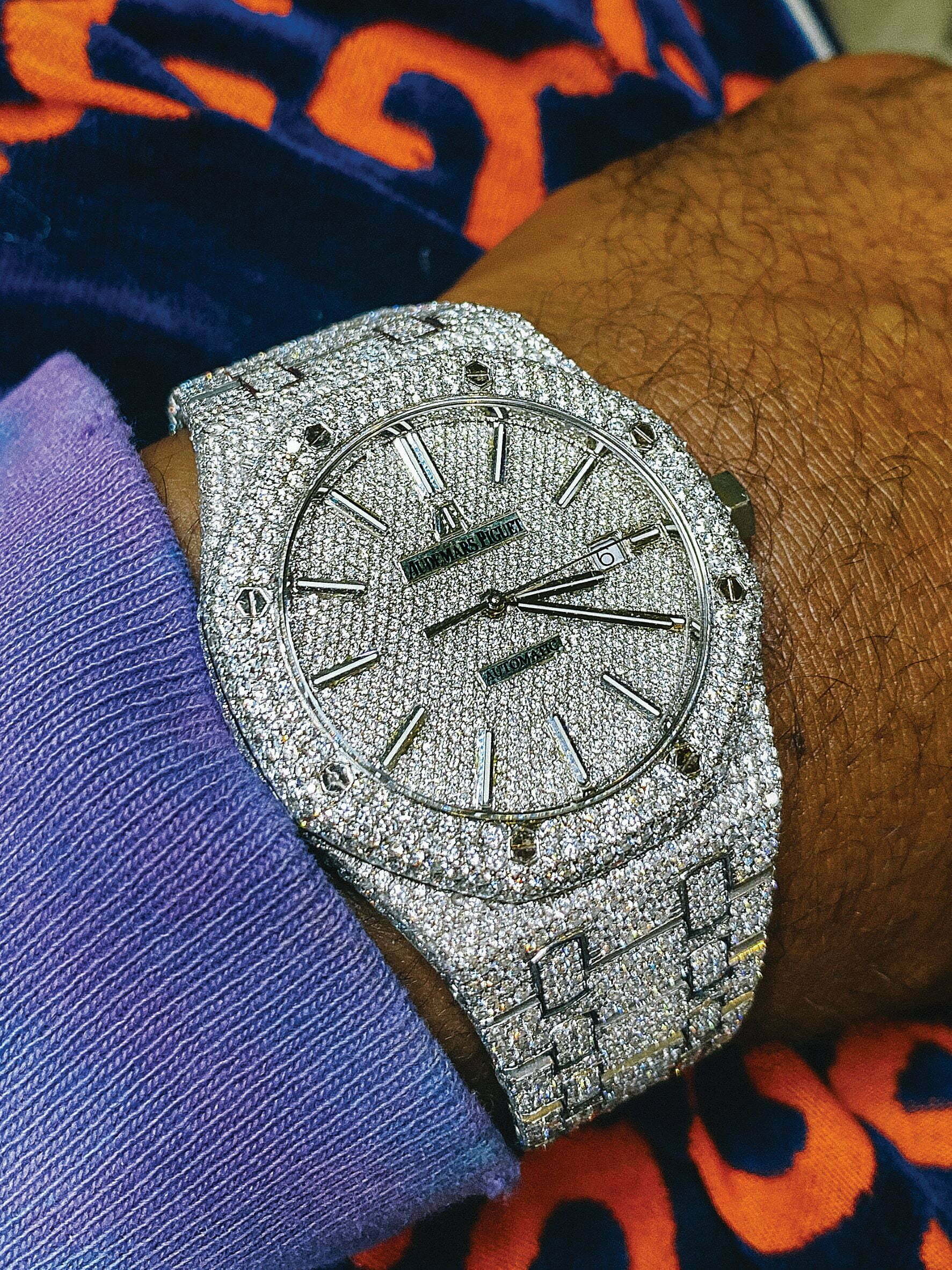 “My main watch, which some people call the ‘bust-down AP,’ is the Audemars Piguet with diamonds. I bought the AP when I was just getting into the NFL. That was the first big-time watch that I bought. It was an opportunity for me to say that I accomplished something big, I walk out with that watch and it’s a statement piece.