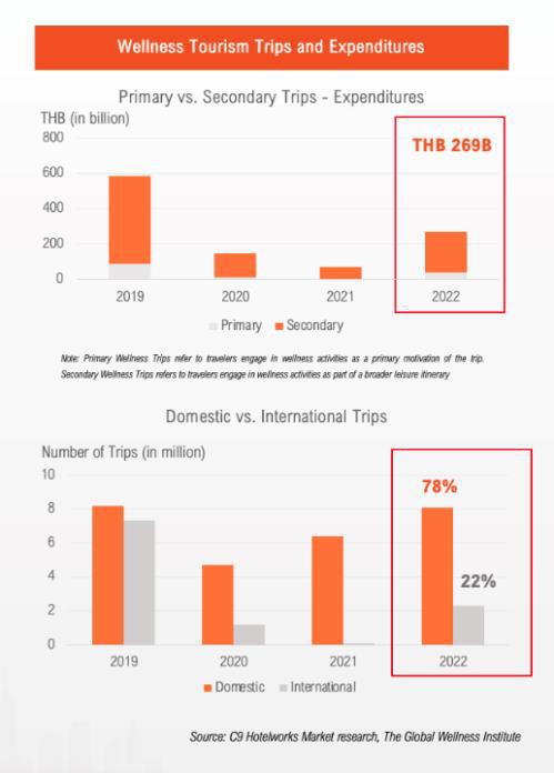 Bill Barnett, Managing Director of C9 Hotelworks revealed key data from the report, including analysis of the figures driving the wellness economy, which is valued at THB 1,200 billion (USD 34.6 billion) in Thailand, with an annual growth rate of 5.58% (2020-2022). This includes THB 296 billion (USD 7.8 billion) in wellness tourism trip expenditure alone.