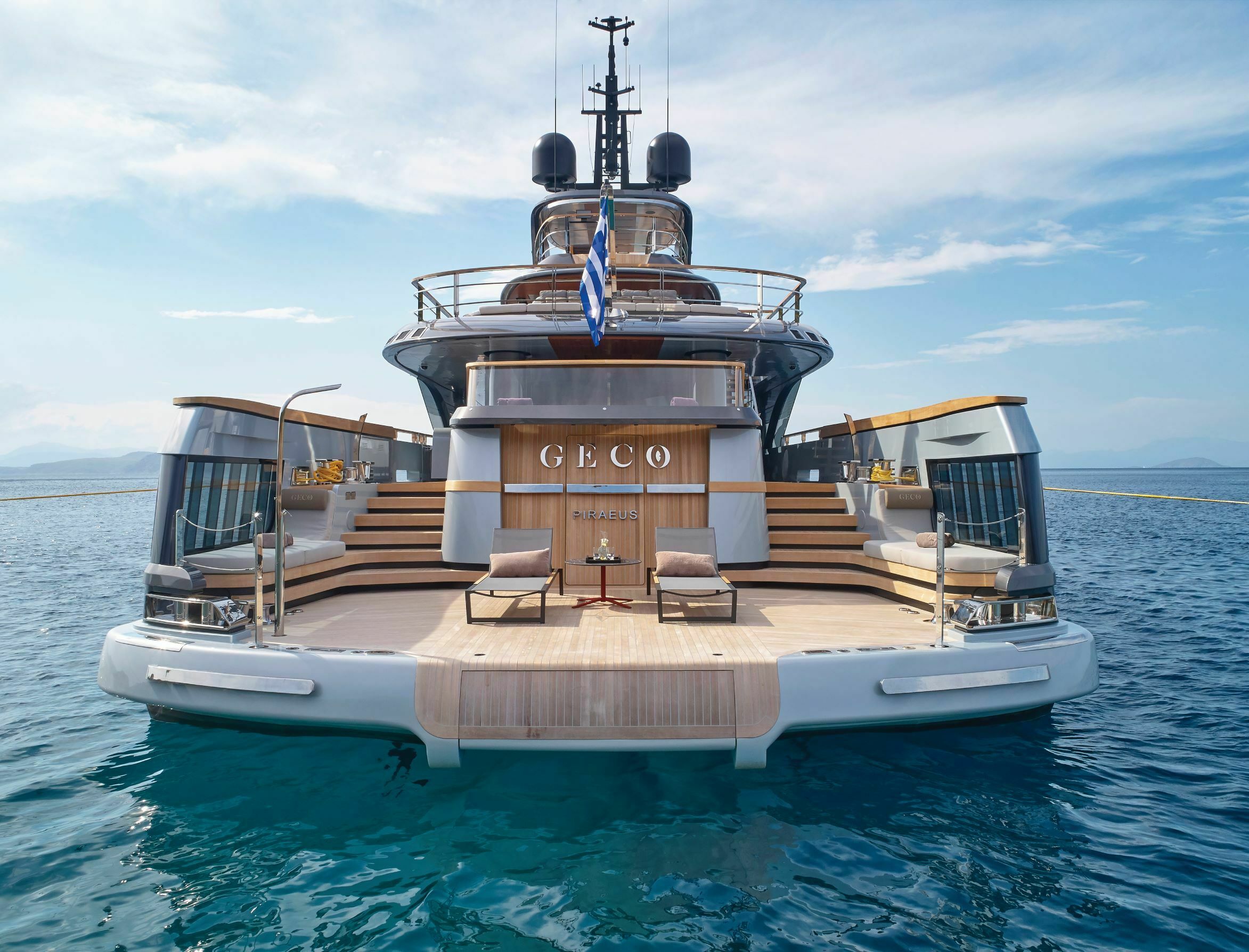 Geco Superyacht ถูกสร้างขึ้นโดย Admiral ซึ่งเป็นส่วนหนึ่งของ Italian Sea Group โดยตัวเรือมีขนาด 180 ฟุต ซึ่งถูกผลิตขึ้นแบบสั่งทำพิเศษเพื่อยกระดับให้ la dolce vita ไปสู่ระดับสูงสุด ประตูเปิดสุดอลังการสร้างบีชคลับดาดฟ้าสุดหรูหรา พร้อมด้วยขั้นบันไดที่สามารถลงเล่นน้ำในทะเลได้ รวมถึงการรับประทานอาหารริมน้ำบนหัวเรือ ลานจอดเฮลิคอปเตอร์ทรงกลม พื้นที่สำหรับอาบแดด และมีทีวีแบบพับเก็บได้ขนาดใหญ่ที่พร้อมฉายภาพยนตร์ใต้แสงดาว และเลานจ์ธีมโบโฮพร้อมเตาผิง สามารถว่ายน้ำพร้อมชมวิวและอาบแดดริมสระว่ายน้ำได้อย่างลงตัว