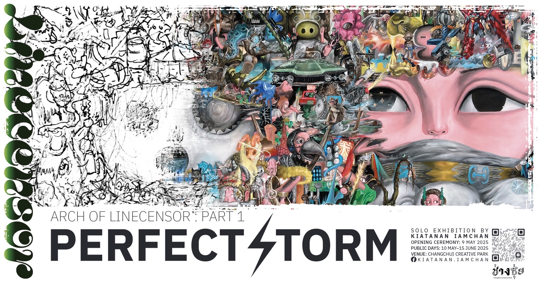 Prepare yourself for an intense artistic impact at the 9th solo exhibition by Line Censor or Kiatanan Iamchan. Titled “ARCH OF LINECENSOR PART 1: PERFECT STORM," this striking art event will take place at ChangChui Gallery, ChangChui Creative Park, to showcase the artist’s distinctive works that reflect his perspectives and identity through the concept of “PERFECT STORM". This theme is open to various interpretations, from inner turbulence and societal upheaval to a fierce eruption of creative energy. Visitors will be immersed in the compelling worldview of Line Censor, renowned for his thought-provoking and intricate creativity.