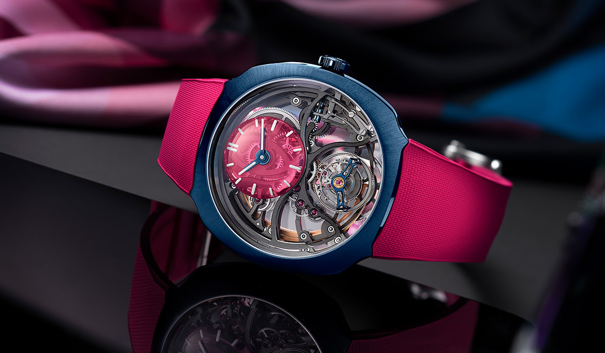 A masterpiece that matters More than just exquisite craftsmanship, the Streamliner Cylindrical Tourbillon Skeleton Alpine Unique Piece stands for something greater. A statement of purpose. A watch with meaning. Inspired by our Streamliner Cylindrical Tourbillon Skeleton Alpine Limited Edition , this timepiece gets an exclusive blue DLC treatment, symbolising the purity of water. A mix of bold blue and striking pink accents ties it to both Alpine Motorsports and BWT, with an extra punch of character thanks to its signature rubber strap. And let’s not forget that mesmerising one-minute flying tourbillon, elegantly positioned at 6 o’clock, dancing beneath a skeletonised dial topped with corundum. It’s bold. It’s brilliant. And it’s uniquely Moser. |