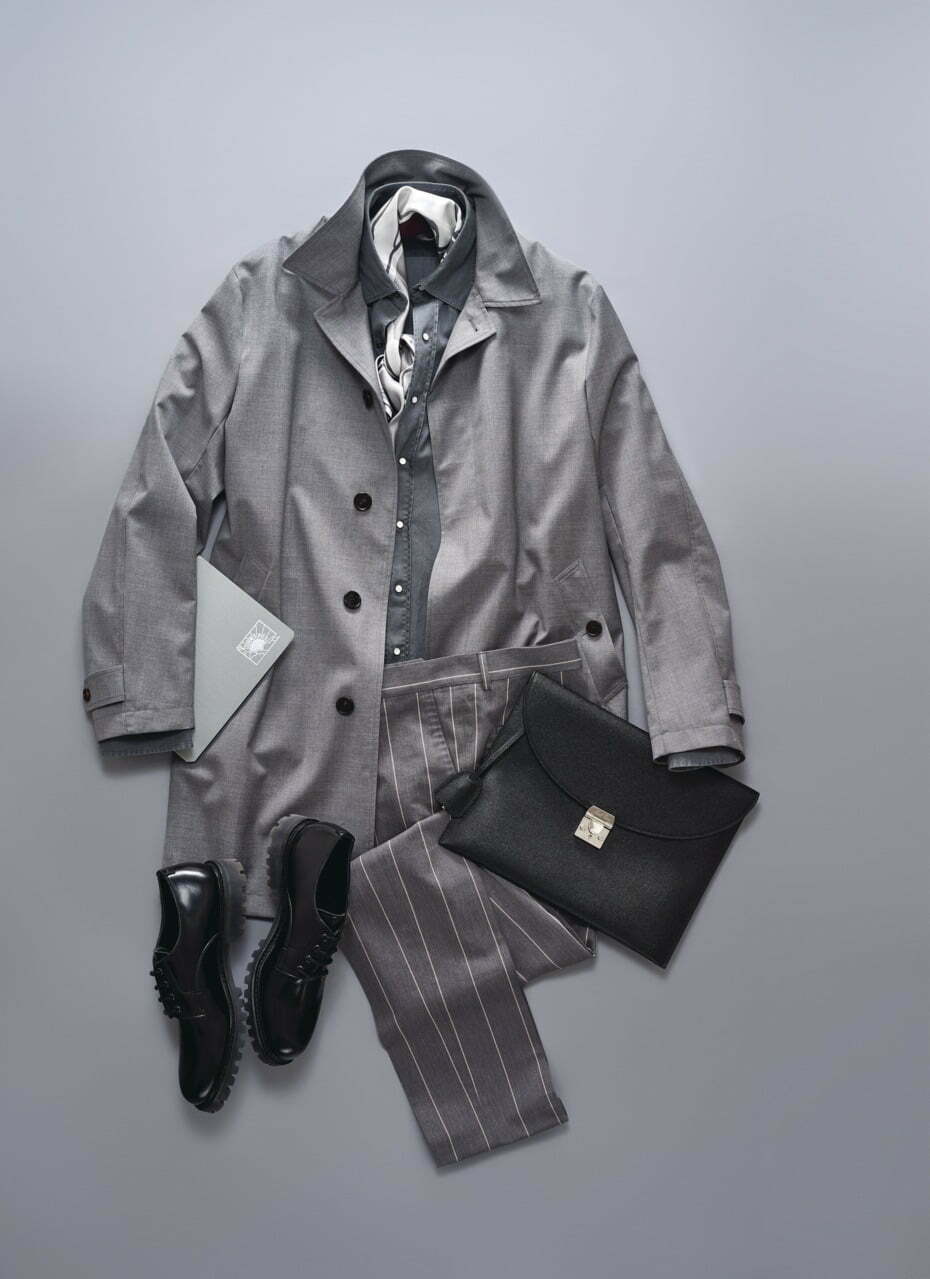 It’s not about matching. Actually, it’s better when you don’t. A medley of gray-scale shades, with a printed scarf and striped trousers in the mix, proves that monotone can really sing.