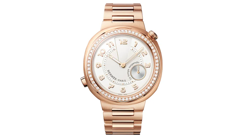 Instead, this circle is what Hermès’s horological creative director refers to as the “beating heart of the watch." Its hand moves counterclockwise around the dial once every 24 seconds, whether the time is suspended or not, to remind you that the watch is still working.