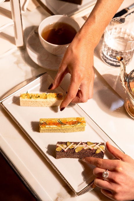 For those with a more savoury palette there is also a selection of delicate sandwiches, including trout and truffle. There will also be special ‘mimosa’ sandwich, featuring egg-mayonnaise and bright orange egg powder to mimic a mimosa flower.