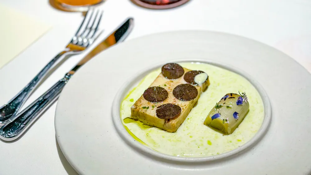 The menu, there is a vegetarian and a non-vegetarian option lists the title of the dish, but then in the parentheses it references the Indian original that Sarkar swerves away from. So a dish called Chicken (Malai Tikka) isn’t skewers but a terrine of poultry and leeks, with earthy spices and heat from the creamy chili-cheese kulcha. Sarkar presents his food through a French lens with meticulously pretty platings served in a dining room with white tablecloths. However, the mellow EDM coming through the speakers and staff in suits and sneakers keep the atmosphere from feeling pretentious.