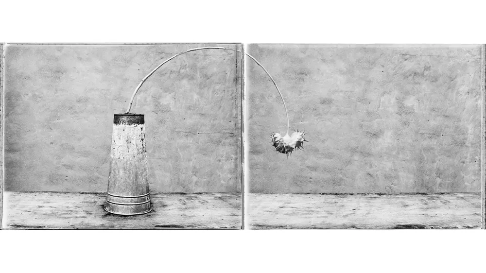 Season after season, as he was tending his garden of sunflowers and waiting for the blooms to die as the cold set in, after which he would begin afresh, Ghidini shared the details with almost no one—just his wife and his dear friends, the celebrated artists Robert Frank and June Leaf. Now his platinum prints are making their worldwide debut in these pages. Be among the first to see them, in “Photo Synthesis."