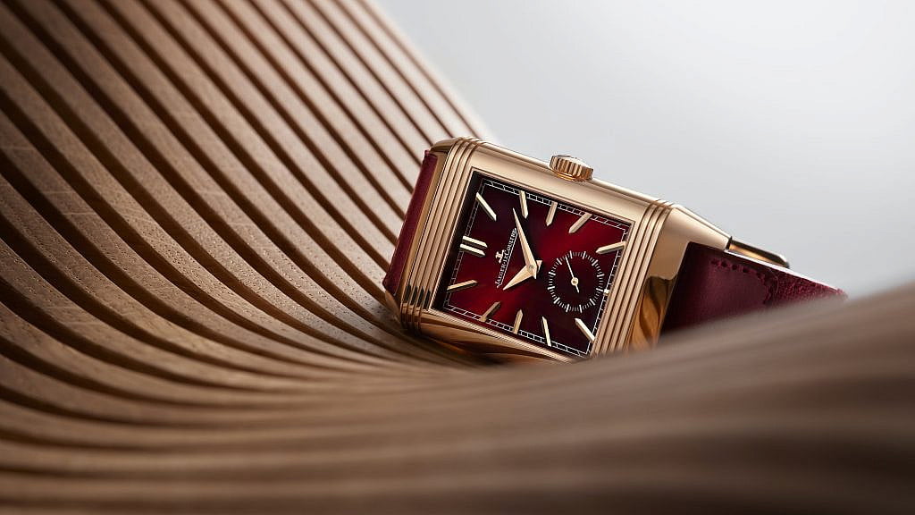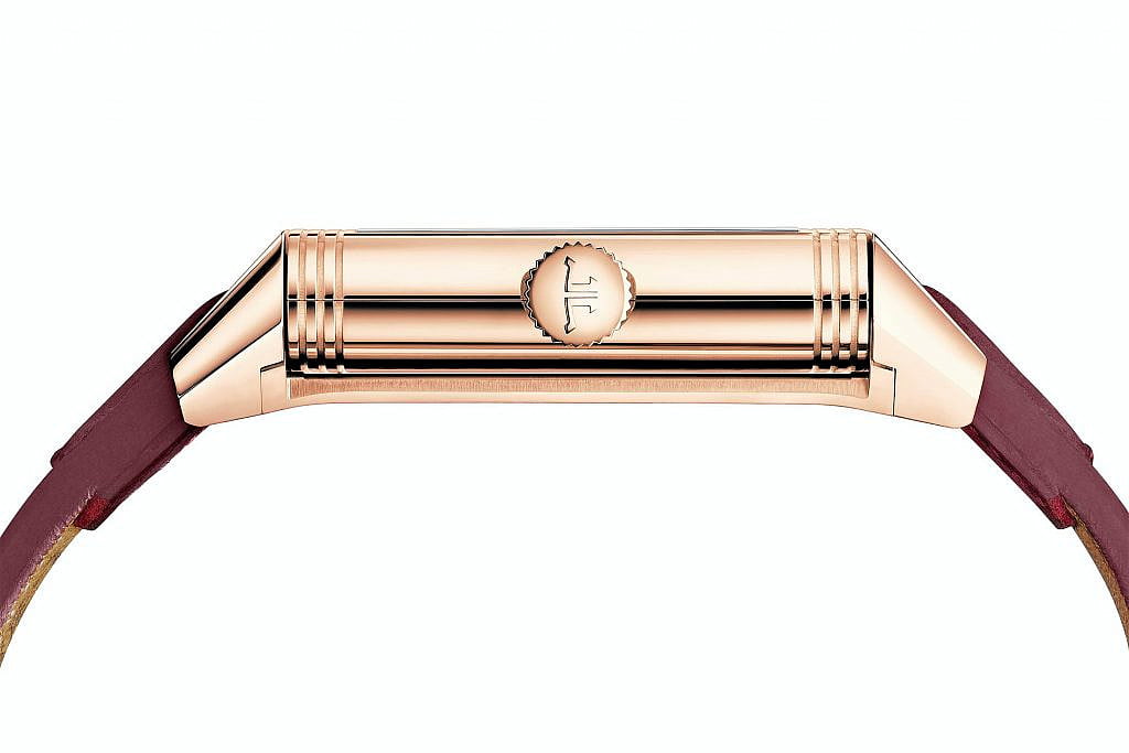 Jaeger-LeCoultre Reverso Tribute Duoface Fagliano เป็น Reverso ในโมเดล Duoface หรือแบบสองหน้าปัด ตัวเรือนทำจากทองคำ 16K ในสี Pink Gold หน้าปัดด้านนึงเป็นสี Ruby Red หรือแดงทับทิมเข้าคู่กันกับสายหนัง Cordovan (หนังก้นม้า) คุณภาพสูง ทนน้ำ ทนการขีดข่วนและยืดหยุ่นได้ดีเยี่ยมผลิตพิเศษจาก Casa Fagliano หน้าปัดอีกด้านมาในสีขาวตัดกับสีทองในสไตล์ Art Deco ขนาดตัวเรือนบางเฉียบ หนาเพียง 10.3 มิลลิเมตรเท่านั้น