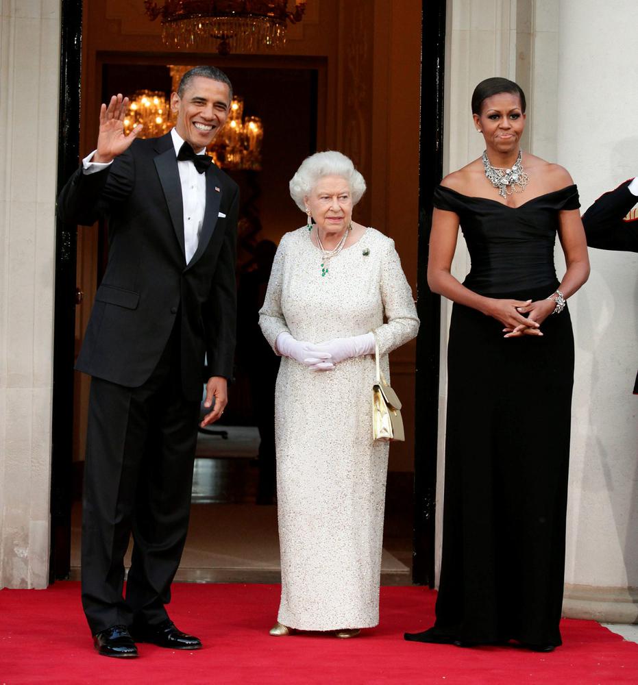 Barack Obama (พรรคเดโมแครต) และ Michelle Obama พร้อมด้วยสมเด็จพระราชินีนาถเอลิซาเบธที่ 2 ที่ปราสาทวินด์เซอร์ในการเยือนสหราชอาณาจักรเมื่อปี 2011 ซึ่งทั้งคู่สวมใส่ชุดจาก Ralph Lauren, Photo: Getty Images
