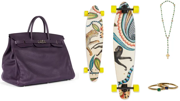 The two parallel auctions celebrate the two artists’ decades-long collaboration. Here, you can even snag fresh items such as pieces that debuted on Louis Vuitton’s Men’s Fall/Winter 2025 runway to artifacts like Williams’s Jacob & Co. Blackberry 8820 in solid gold (we assume it’s been wiped, so you probably won’t get ahold of his golden “rolodex"). Other pieces worth considering are Williams’s Franck Muller Cintree Curves Tourbillon (the brand is seeing a bit of a resurgence in certain circles, so it’s the perfect time to get in on a timepiece from this maker) to several skateboards from both NIGO and Williams, including a beautifully executed one from Hermès. Speaking of that French luxury house, there are many Hermès handbags. NIGO has clearly been spending heavily on coveted Birkins, and now he’s unloading. Maybe to make room for more?