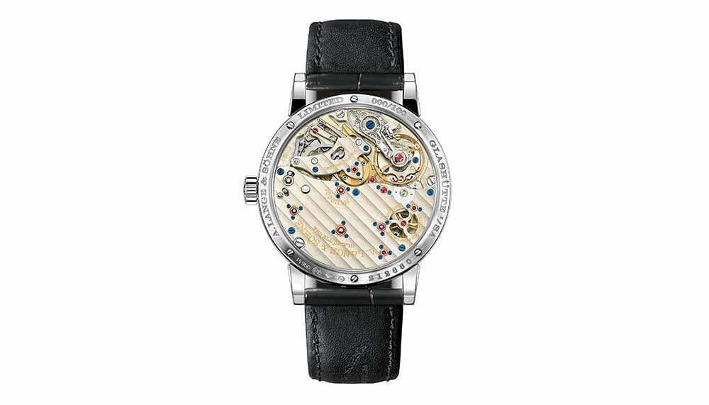 The resulting imagery is a singularly magnificent sight of a precisely jumping seconds hand – crisp, sharp and unerring. This mechanism, in fact, recalls the 1867 ‘one-second movement with a jumping hand’ by founder Ferdinand Adolph Lange, whose invention duly received a patent by the Imperial Patent Office.