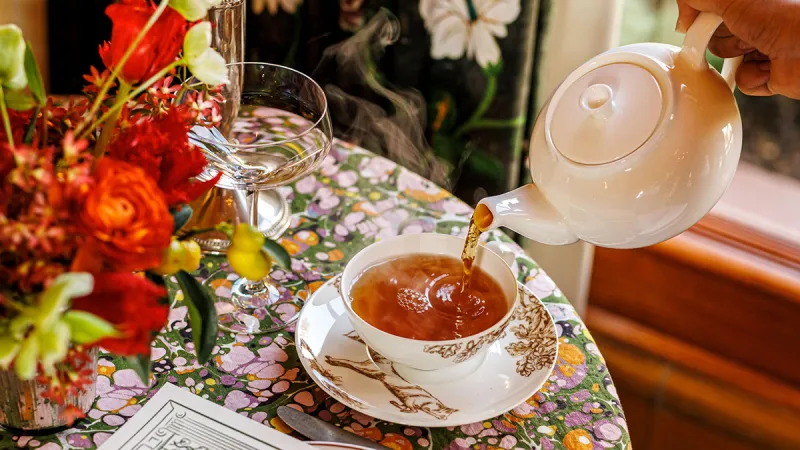 For a truly unique experience, impeccable interior designer Ken Fulk has partnered with Commodore Perry Estate, Auberge Resorts Collection to create a holiday experience unlike any other. Fulk brought the former Austin 1920s mansion to life as a luxury hotel and social club in 2020. Guests throughout the year are dazzled by Fulk’s exquisite interiors and immaculate attention to detail, but the holidays will bring something special. He has brought a grand Festive Tea, where an elegant table awaits with an assortment of teas on display, as well as a hand-drawn menu of savory small bites and sweet treats including sandwiches, pastries, and mignardises and a toast to kick off the tea.