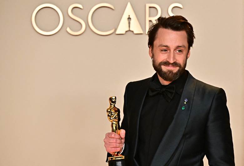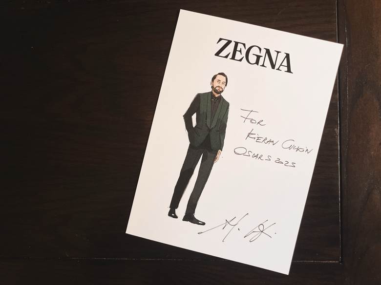 (LOS ANGELES, CALIFORNIA– March 2nd, 2025) – Kieran Culkin, Academy Award winner for Best Actor in a Supporting Role for “A Real Pain", wears a ZEGNA one breasted shawl lapel tuxedo jacket in deep green silk, mohair wool and black satin details on rever, black silk shirt, black mohair wool classic pants, and black satin bowtie at the Dolby Theatre.