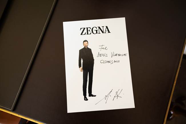 (LOS ANGELES, CALIFORNIA– March 2nd, 2025) – Denis Villeneuve wears a ZEGNA one button single-breasted shawl lapel tuxedo jacket in black velvet with rever details in black satin, matching black satin bow tie, black silk dress shirt, black mohair wool classic pants with side band in black satin and black Vienna Evening shoes at the Dolby Theatre.