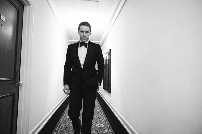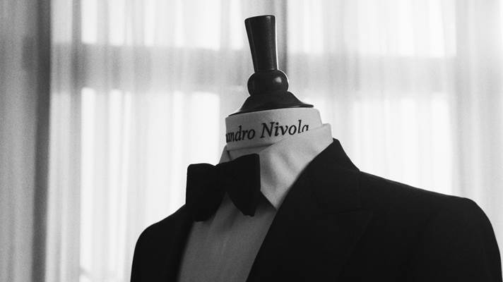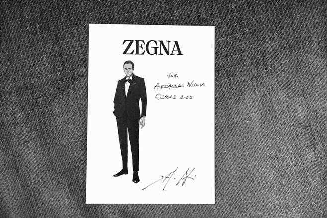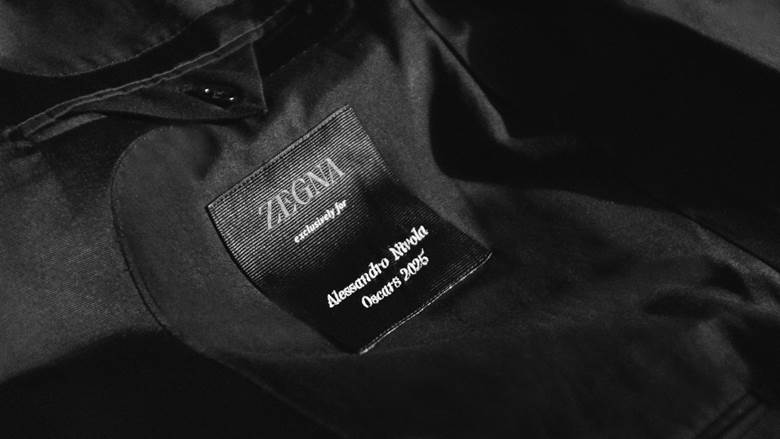 (LOS ANGELES, CALIFORNIA– March 2nd, 2025) – Alessandro Nivola wears a ZEGNA one button single-breasted peak lapel tuxedo jacket in black mohair wool with lapel in ottoman and matching black bow tie, ivory silk dress shirt and black mohair wool classic pants with side band in black ottoman at the Dolby Theatre.