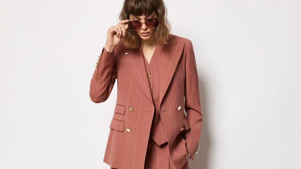 That means timeless elements fused with contemporary trends and tailored silhouettes that celebrate the female form rather than work against it. The new lineup features essential pieces—blazers, suits, outerwear, and trousers—reinterpreted through a feminine lens. Crafted from premium wools and linens, with a color palette that spans crisp whites to burnt orange, the collection ensures day-to-night versatility. Intricate jacquards, decorative buttons, and the brand’s signature lapel pins add a touch of individuality to each piece, allowing expressions of personal style to shine through.