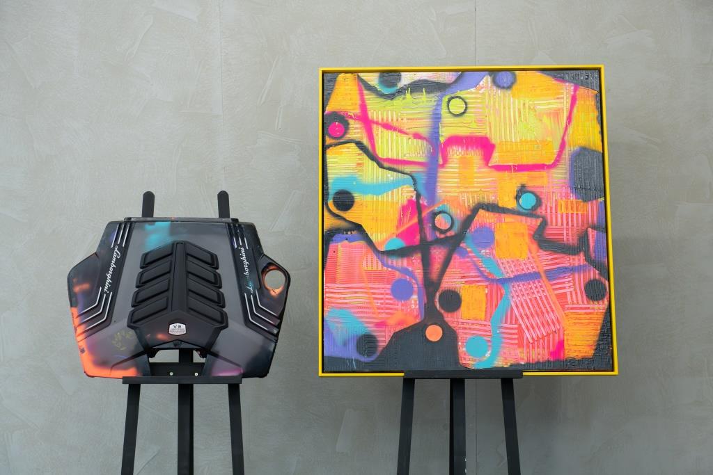 Moreover, drawing inspiration from the Lamborghini engine cover, the piece pays tribute to inner strength and hidden beauty, tucked beneath the bonnet and visible only to the owner. Like the engine itself, which fuels Lamborghini’s unparalleled performance, the artwork reveals its true essence when explored deeply. Much like Lamborghini, it is a testament to the beauty of individuality and the courage to journey into the unexpected—a one-of-a-kind work of art that stands alone in the world.