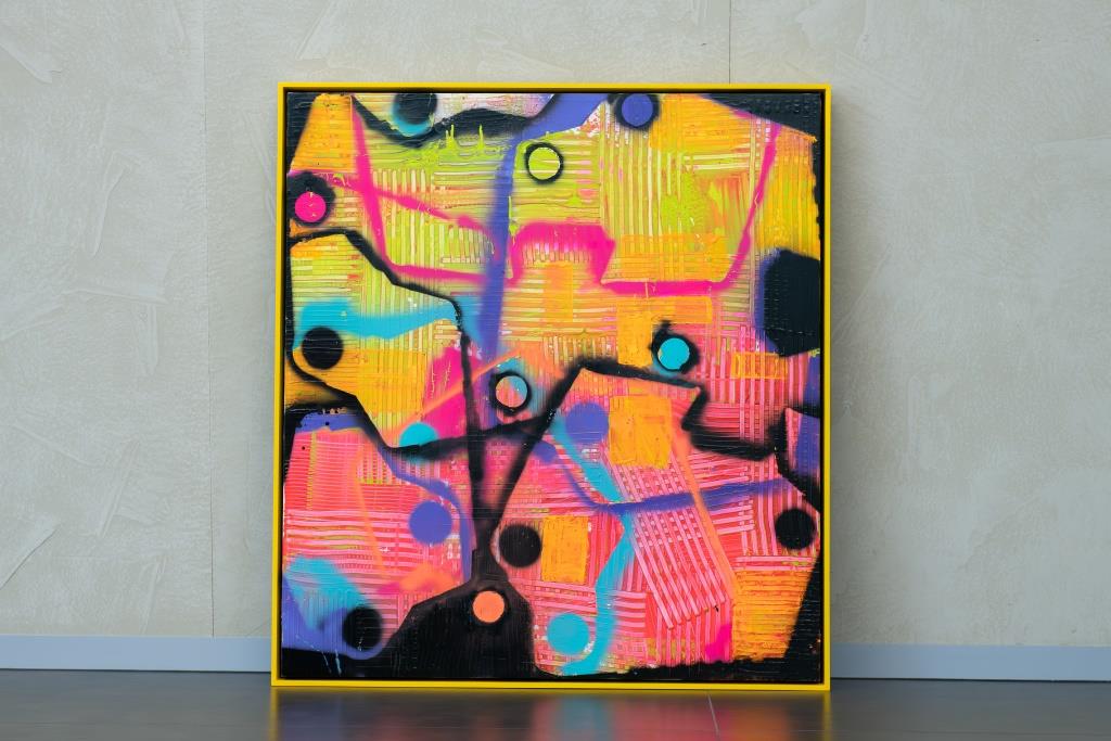“Engine of the Heart" is a dynamic expression of boldness and authenticity, inspired by the iconic shape and form of Lamborghini. This abstract painting uses prominent colors to convey a sense of energy, determination, and forward momentum. The composition embodies a daring spirit, capturing a character that embraces strength, confidence, and independence. The artwork’s textured surface evokes the look and feel of roads and pathways, resembling an aerial view of streets winding through a journey. This detail symbolizes exploration, progress, and the transformative power of movement —an ode to Lamborghini’s relentless pursuit of innovation and performance.