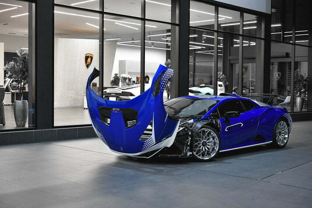 The Huracán STO uses carbon fiber in more than 75% of its exterior panels, benefiting from complex structures produced as a single component for increased integrity while also reducing weight via less fixing points.