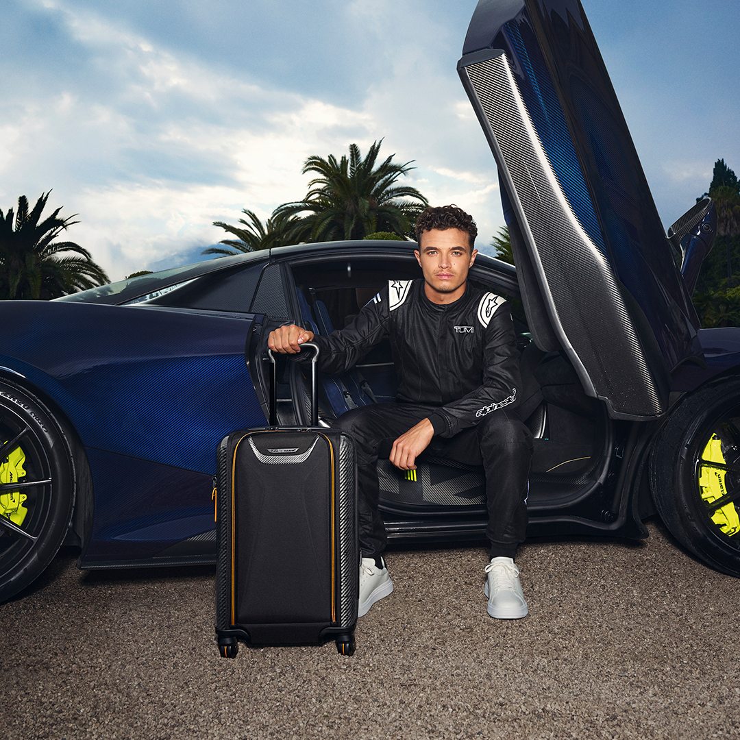 The brand’s newest campaign offers a glimpse into the McLaren Formula 1 Driver’s life, taking viewers along for the ride with his favorite TUMI styles.