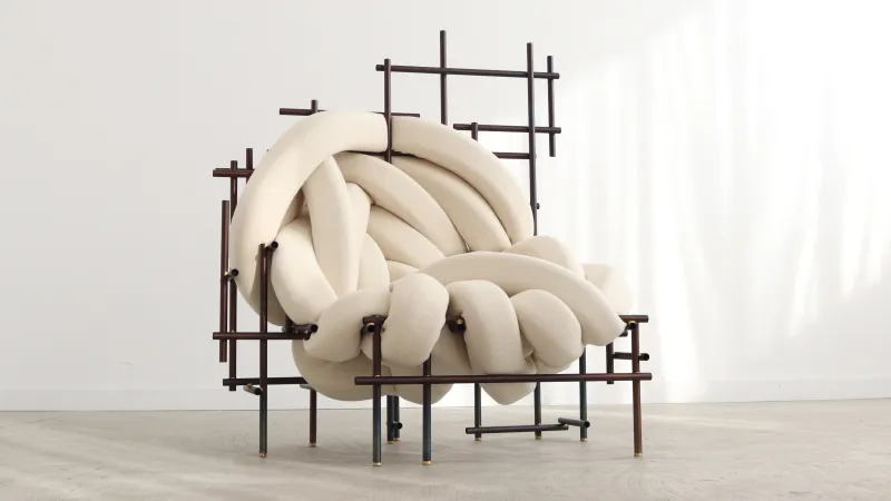 Tapping into the heritage of American industrial design, Michigan-born and -based designer Evan Fay uses tried-and-true materials such as steel, glass, and brass to craft eye-catching pieces exemplifying the contemporary-design canon. Take his Lawless fauteuil, a bold interpretation of the classic French armchair, which features a frame of steel pipes interwoven with upholstered-foam tubes. The rigid grid contrasts with the soft seat for a gallery-worthy visual contradiction that will elevate your space—and likely spark some good-natured debate over its polarizing merits. Price upon request