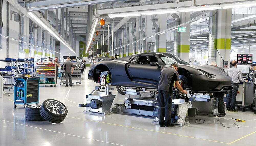 Even the Porsche 918 Spyder,an incredibly complex supercar which packs 887bhp from three power sources (a pair of electric motors and a racecar-derived V8 engine), is hand-assembled by 100 of the carmaker’s top production workers. The methods used in the 918 Spyder’s production may be decidedly old-school, but the tools used in its assembly are anything but. Take for instance, the cordless screwdrivers used in the car’s manufacture to tighten screws to a predetermined torque setting. Using a Bluetooth wireless data connection, each is so precise that it can locate its position in relation to the individual screw positions on the vehicle. This maximises efficiency and minimises the possibility of errors.