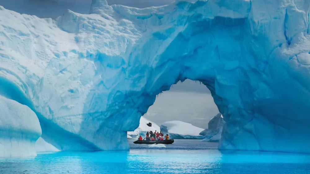 Sailing on your own ship like this, says Wilmot-Sitwell, turns you into “the director of your own expedition," where you can respond in a moment to anything you see. “If you spot whales or want extra time with a penguin colony, you can change course on a whim," he says. Take a heliskiing trip to the Danco Coast and Graham Land, with icebergs drifting below, cinematic and dramatic both, or hit the long verticals of the Filchner-Ronne Ice Shelf near the Weddell Sea. That onboard submersible can roam Marguerite Bay to hunt for bioluminescent plankton, sponges, and even Antarctic krill swarms. Or venture near the Larsen Ice Shelf, where the underwater formations are so dramatic that it’s likened to a frozen cathedral.