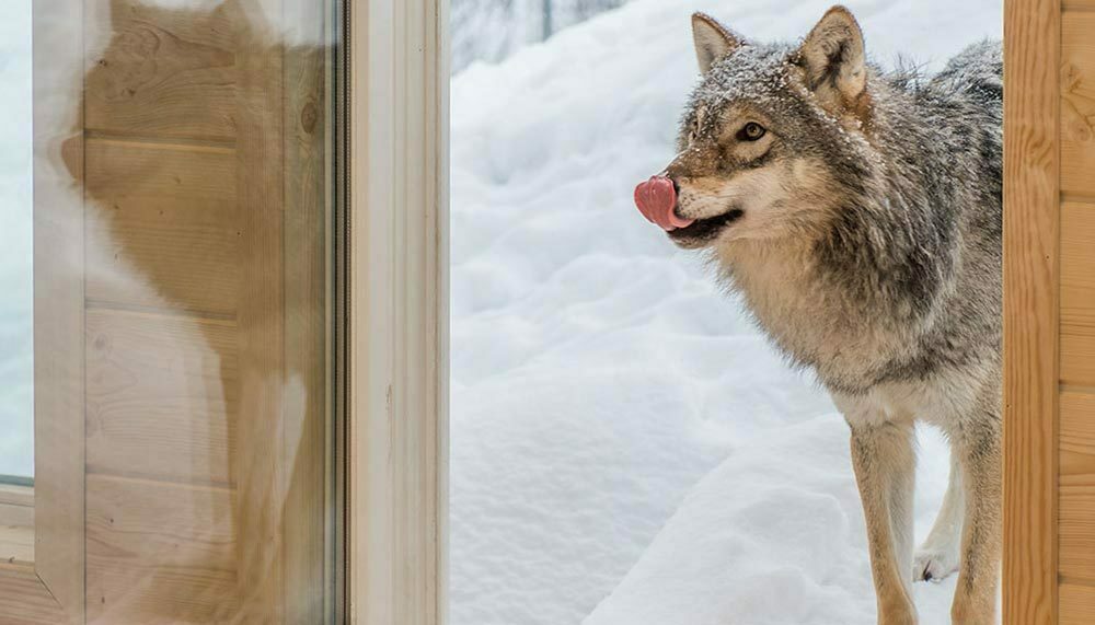 Hunted almost to extinction across Europe by the 1970s, the majestic grey wolf has been making a comeback as rural populations decrease. The last wolf in Norway was killed in 1973, but began returning as wolves recolonised the Scandinavian Peninsula in the early 80s. They are now a fully protected species, and the wolves at Polar Park are protected, in more ways than one: the three wolf packs here are all born in captivity, living in separate enclosures. Two of the packs – Salangsflokken and the ‘2010’ – are socialised with humans, physically interacting with visitors, even going as far as ‘kissing’ them. It is these wolves that guests at the WolfLodge will live among. That these wolves are ‘tame’ should temper some of the natural fear felt, though the eerie howls that echo and reverberate serve as a reminder than these animals belong in the wild.