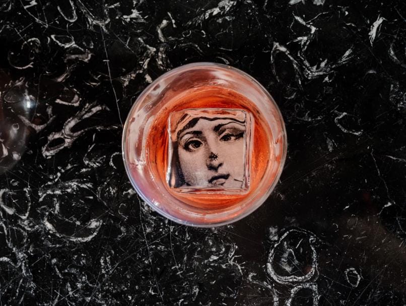 CaraLina is the signature drink overtly inspired by Lina Cavalieri, Fornasetti’s muse. Served in an elegant glass from the “Tema e Variazioni" series, the cocktail is a twist on the classic Negroni: Campari, Mezcal, a bitter note of Ancho Reyes, a spicy touch of Cocchi Barolo Chinato and captivating Chocolate Bitter all feature in this signature created by Mandarin Garden’s talented mixology team. Finished with a disk of chocolate on top of the glass and a touch of smoke, this drink unveils a surprise: the elegant glass features the face of the opera singer Lina Cavalieri at the bottom. Sip by sip, her enigmatic and unique gaze adds an ironic touch to the drink, in perfect Fornasetti style.
