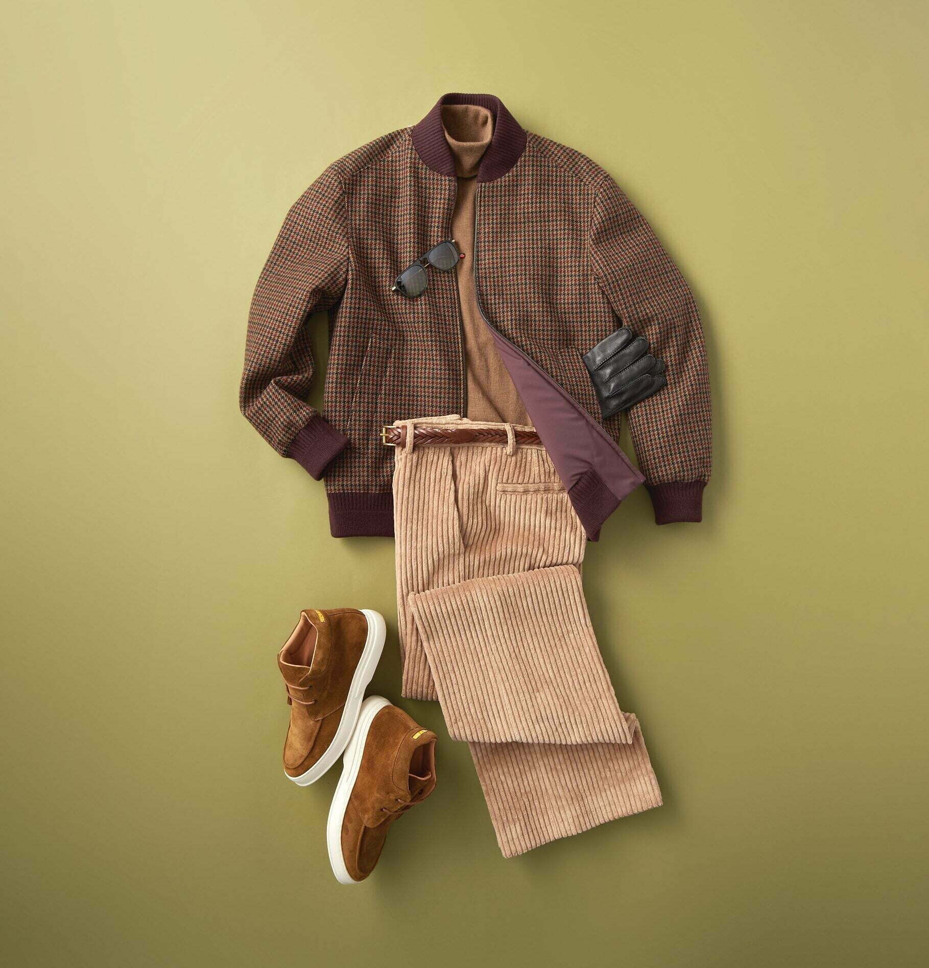 ถ้าคุณคิดไม่ออกระหว่างกางเกงยีนส์หรือกางเกงชิโน คุณสามารถเพิ่มสไตล์ในการแต่งตัว ด้วยการเพิ่มกางเกงผ้าลูกฟูกทรงขากว้างที่ให้สัมผัสบางเบาเปรียบเสมือนสวมใส่กางเกงวอม แต่ให้ความรู้สึกถึงความหรูและดูดียิ่งขึ้น