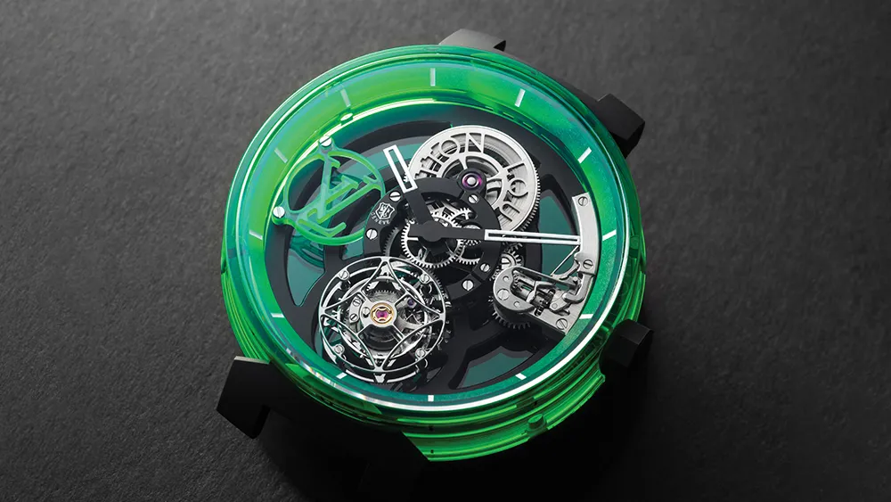โลกแห่งการบอกเวลานั้นแพร่หลายไปในประเพณี ที่หลายแบรนด์ออกแบบนาฬิกาเก็บไว้ถาวรเพื่อส่งเสริมธุรกิจใหม่ แต่ไม่ใช่ Louis Vuitton ภายใต้การดูแลอย่างใกล้ชิดของ Jean Arnault ผู้อำนวยการฝ่ายนาฬิกา (และเป็นลูกคนสุดท้องของ LVMH Honcho Bernard Arnault) แบรนด์ฝรั่งเศสกำลังออกแบบและผลิตนาฬิกาที่ซับซ้อนและคิดล่วงหน้ามากที่สุดในโลก รวมถึงรุ่น Tambour Moon Tourbillon Volant ที่ใสดุจคริสตัล ซึ่งเปิดตัวในปี 2021