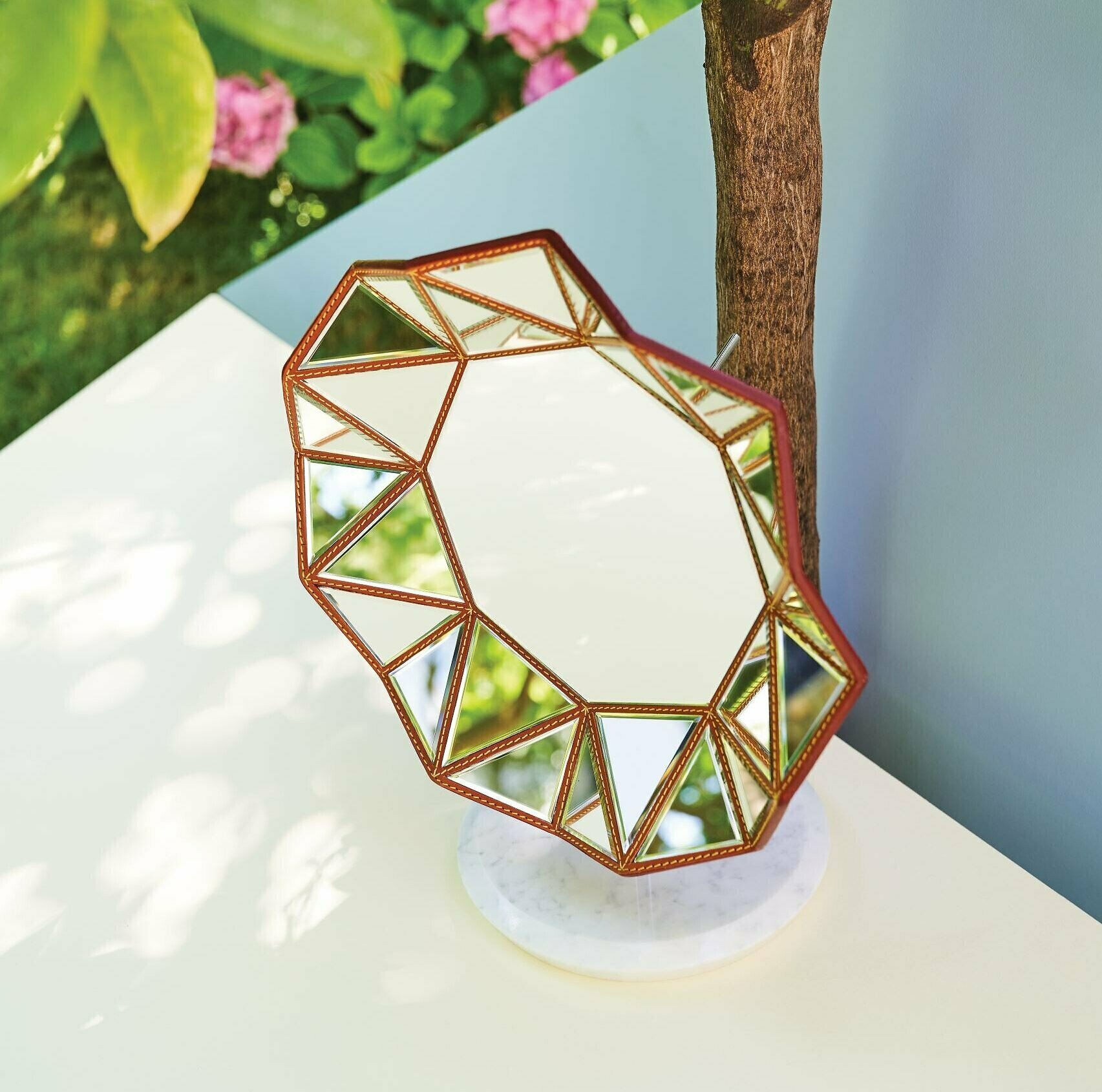 Louis Vuitton Objets โต๊ะ Nomades Cosmic จาก Raw Edges พร้อมฐานที่หุ้มด้วยหนังและท็อปกระจก และหนัง Merengue และผ้าวูลโดย Campana Brothers
