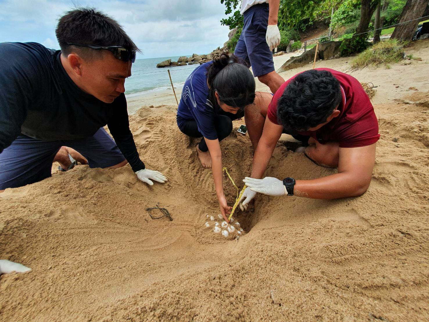 It’s very rare for a sea turtle to lay her eggs on a strand that’s usually strewn with beach towels – usually they seek a hidden shore on a remote island. But this Mother Turtle got lucky in choosing the private cove at Banyan Tree Samui as a nesting place. For not only is the resort the highest ranked hotel in Thailand (by watchdog EarthCheck) in terms of eco-friendliness and sustainability, but it also employs a marine biologist as CSR manager. When the giant green turtle laid three clutches of more than 200 eggs on the beach in February and March, the Banyan Tree team got together with local vets to monitor the eggs and build a fence around the nests to keep out predators such as monitor lizards. Needless to say, the beachfront enclosure has become adopted by the guests at the resort as something of a cause célèbre. The eggs are due to hatch by April 12.