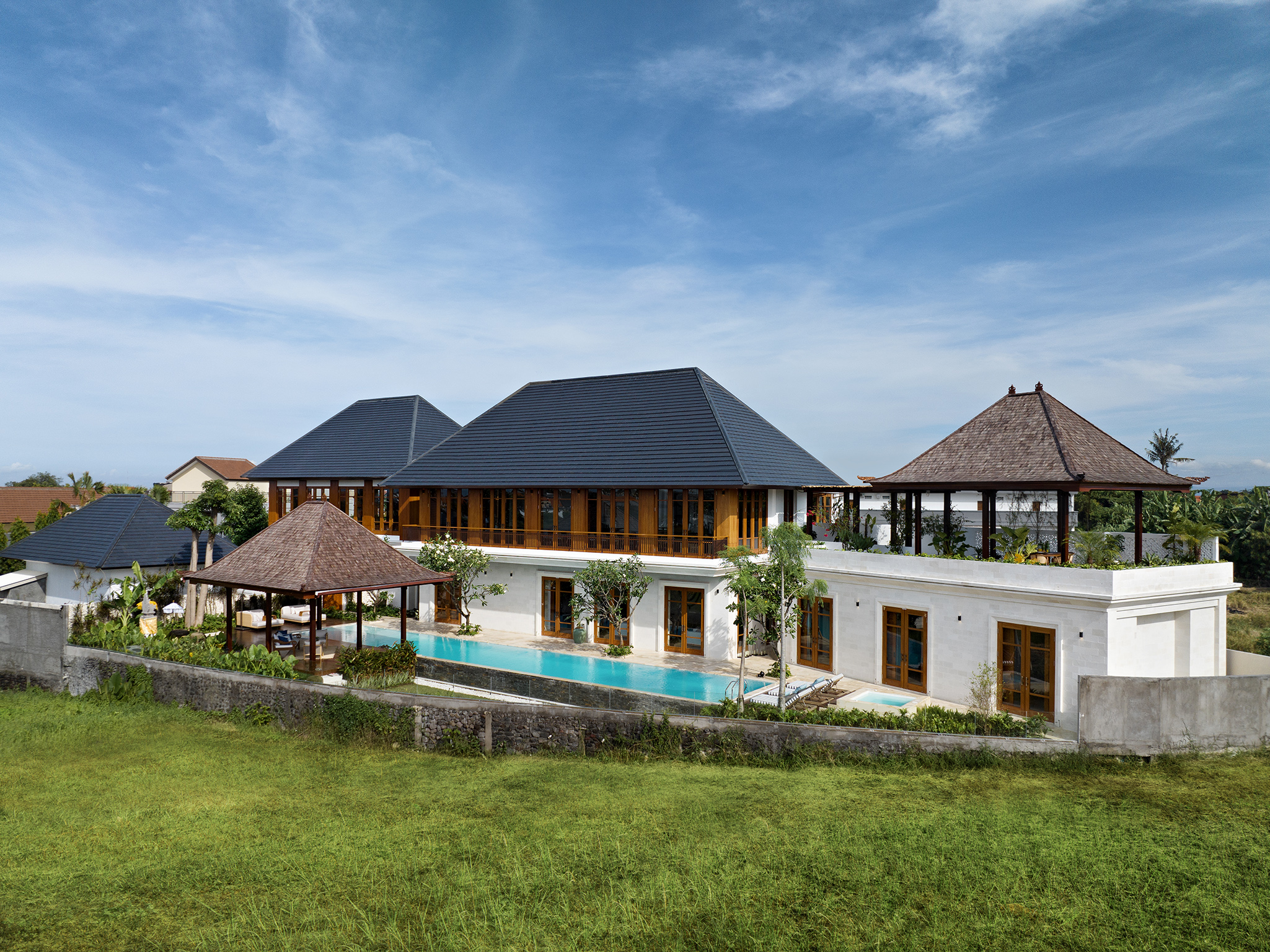A soothing green vista of rice paddies awaits at six-bedroom Villa Dhanika, tucked away at the end of a peaceful lane in the vibrant district of Canggu, Bali. Newly built in 2024, no details have been spared in this luxuriously appointed modern villa. Expansive living areas and guest bedrooms are spread over three double-storey pavilions, with a stunning master bedroom pavilion at the end of the property opening directly onto the jacuzzi and pool.