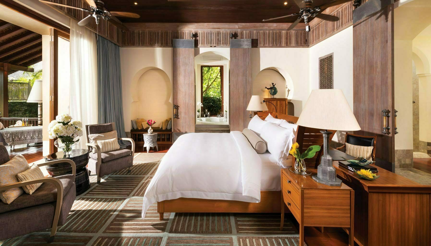 The island of Langkawi is named for the convocations of eagles that have settled in the towering trees next to the mangrove swamps, an elaborate series of mandrake roots spanning several kilometres. There also other creatures in the locale, both great and small, of land, water and air, all of which call the island’s 550-million-year-old UNESCO-certified Geopark, home. A mere five minutes away by boat is the Four Seasons Resort, a property that draws both jet-setters from around the world and Bollywood stars, the latter of whom were ensconced in its Royal Villa for a month during the filming of the movie ‘Roy’. At 1,400 sqm, the two-bedroom unit is the resort’s largest with its own swimming pool and spa rooms, making trips to the resort’s two main pools and Geo Spa options optional. The space is palatial and profoundly relaxing. It is an orchestration of tasteful tropical wood and Spanish marble fittings, as well as classic Malay and Moorish design templates. It also offers close proximity – by way of the open-air bathroom – to a rocky karst outcrop, part of a primordial segment of limestone hills enveloping the resort. The suite also features a comfortable daybed, a 140-centimete plasma screen television, a private bar, an espresso machine, and a writing desk along with high-speed Internet access for – hopefully – rare moments of work.