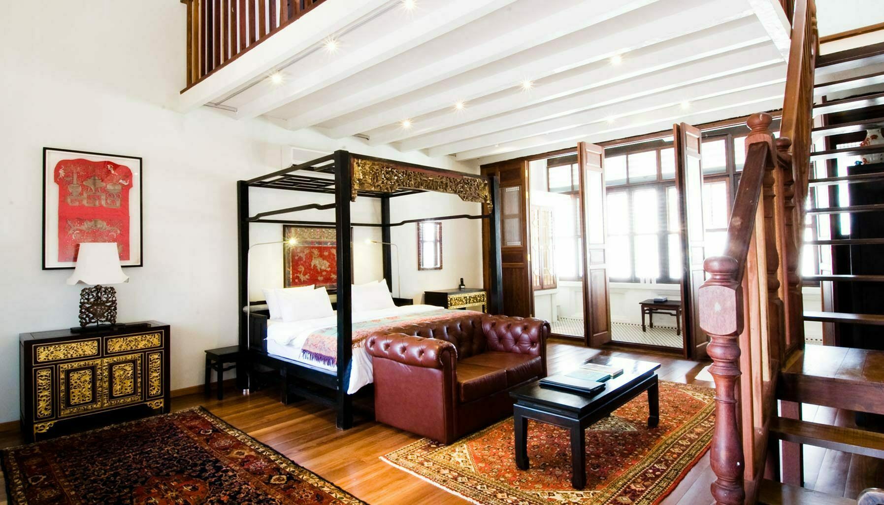 The narrow lanes that abound with heritage shophouses and their equally aged inhabitants who craft their living from joss-tick making, fruit-selling, fortune-telling, and other trades, are the yarns which Georgetown has used to weave its cultural stories. Next to one of the island’s oldest Goddess of Mercy temples is Seven Terraces, an exquisite 18-suite property that artfully marries the island’s storied Peranakan heritage with five-star luxury and hospitality. At Seven Terraces, hoteliers Christopher Ong and Karl Steinberg have both brought a stylish sensibility on to a formerly dilapidated row of seven Anglo-Chinese terrace units. So while the Peranakan antiques and art works selected by Ong, displayed in the public areas and suites, are categorically old world, it’s the creature comforts like the cashmere bed throws and high-thread count all-white bedding that make all accommodations including the top-end Grand Apartment (from RM2,400 a night), a treat to linger in. A pair of ornate red Chinese doors leads into the suite, where museum-worthy 19th century Baba nyonya artefacts are displayed: lacquered cabinets, opium beds, altar tables as well as other items that would impress any antiques collector. Beyond the interiors worthy of a museum, after a day exploring the island, there’s also an inviting lap pool to cool off in and a sundeck to lounge about in the evenings with a cocktail in hand.